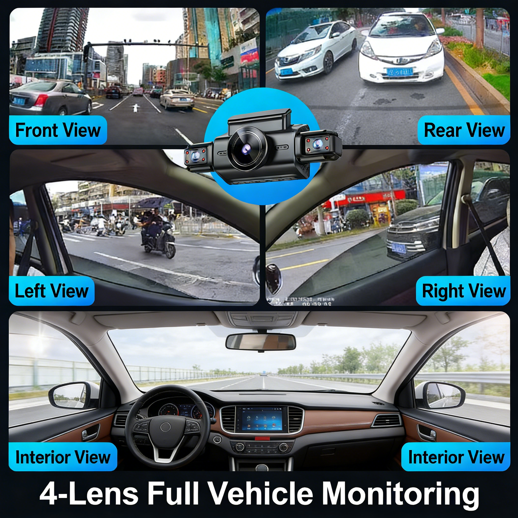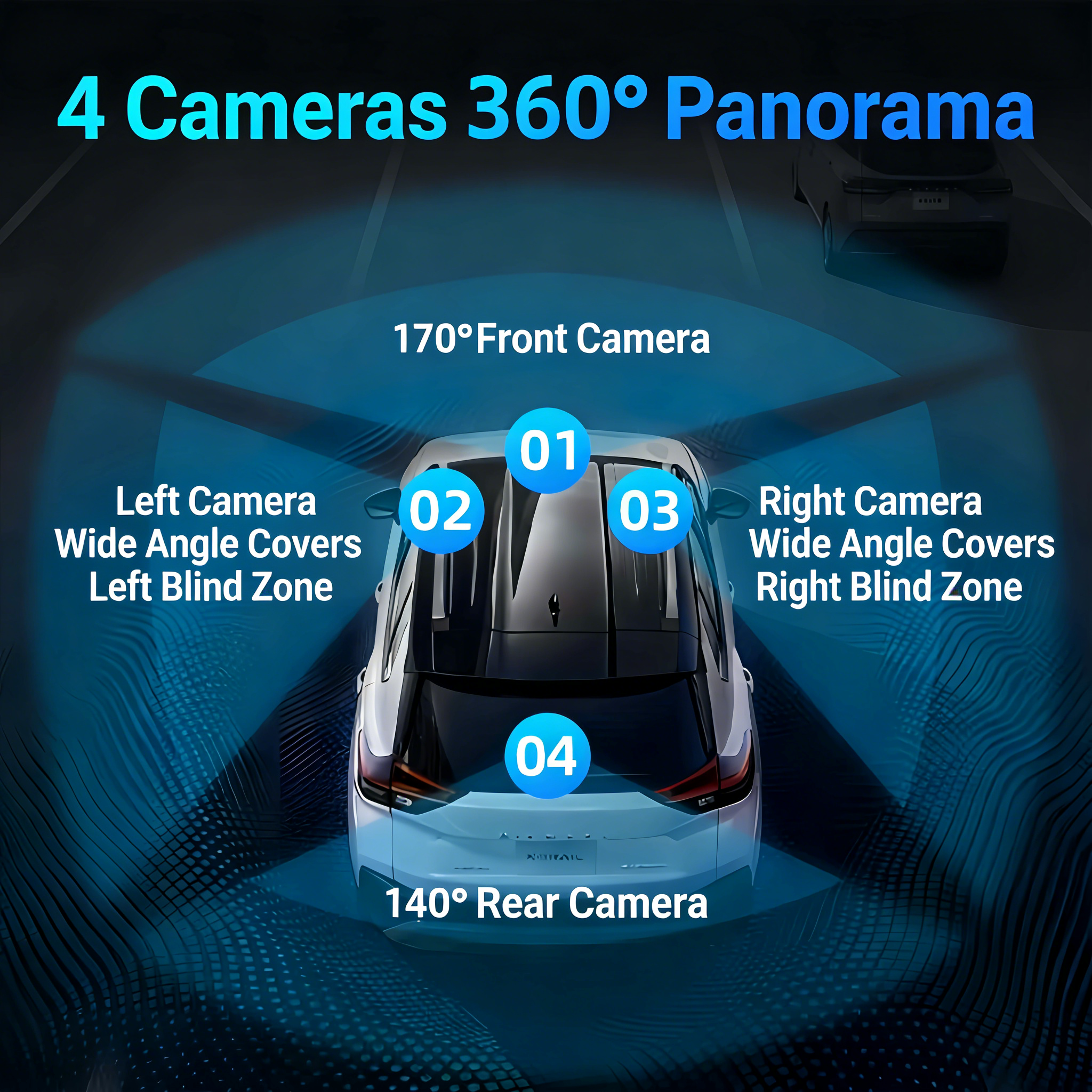 360° panoráma felügyelet:A négykamerás rendszer minden holtteret lefed az autó körül, akár elöl, oldalt, vagy hátul, teljes mértékben rögzíti a vezetési nyomvonalat, biztosítva, hogy minden körülmények között teljes védelmet kapjon. 👀