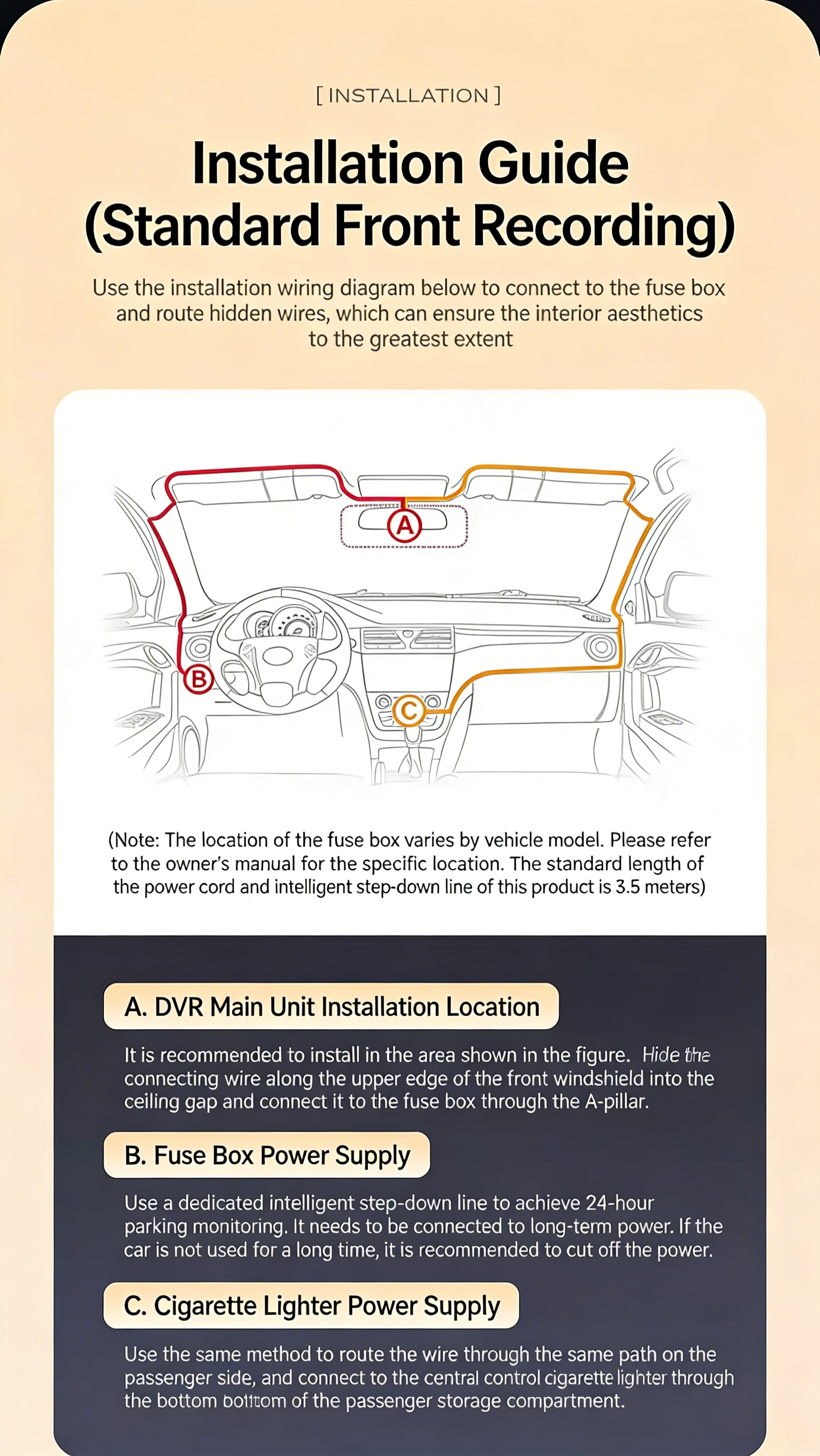 24 órás parkolási felügyelet:Még akkor is, amikor az autó leáll, a parkolási felügyelet funkció aktív marad, valós időben rögzíti az esetleges rendellenességeket, biztosítva a jármű védelmét. 🛑
