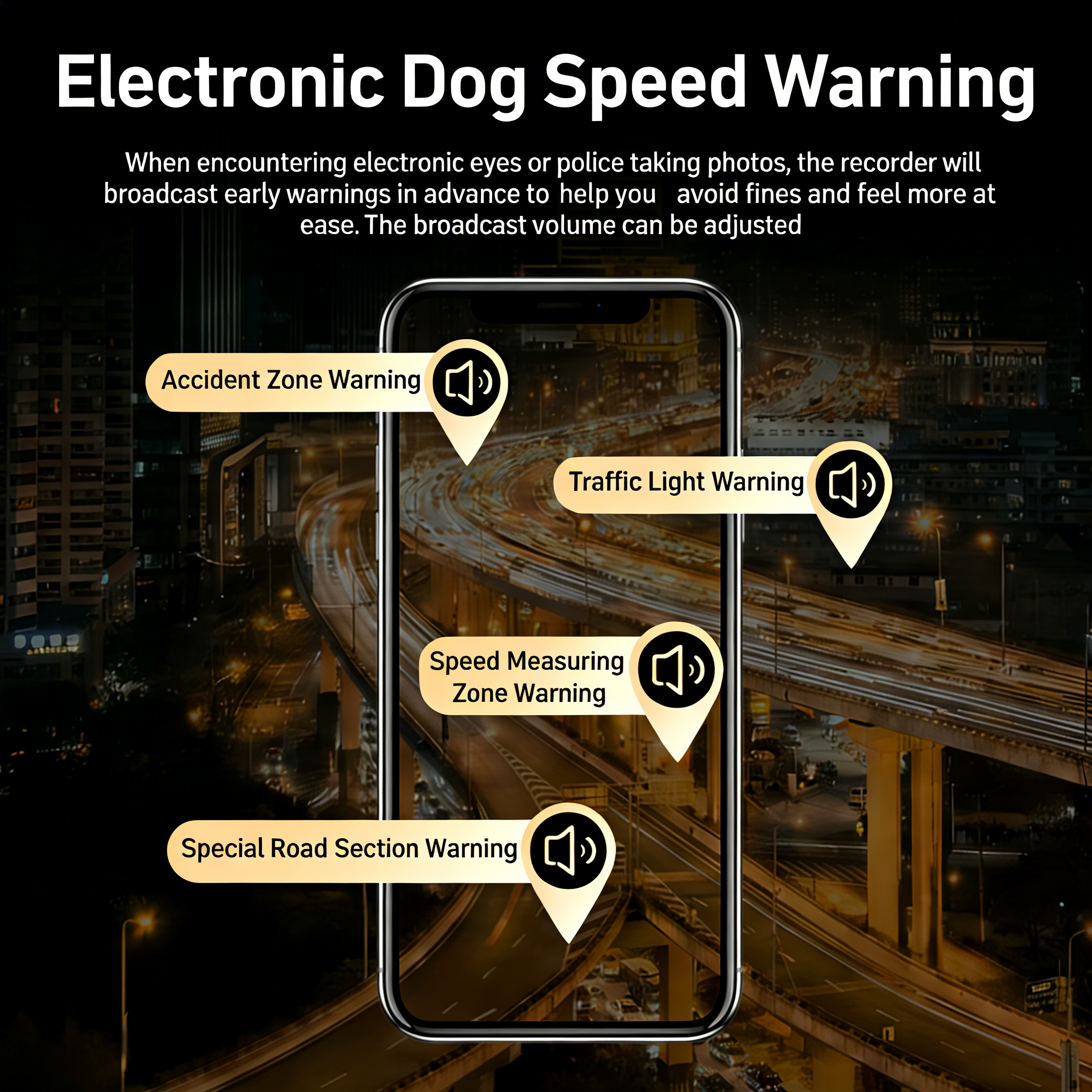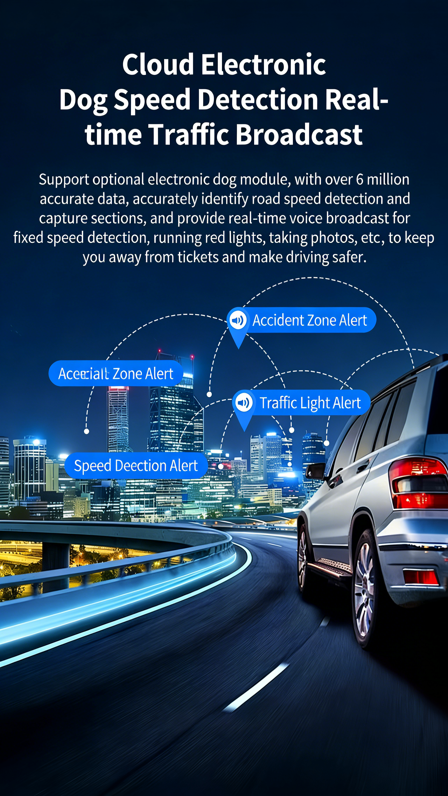 Elektromos sebességmérő és figyelmeztetés:Az elektronikus sebességmérő modul segítségével pontosan felismeri az útfelületen található sebességmérő pontokat, és időben értesíti a sebességkorlátozásokat, elkerülve a közlekedési bírságokat. 🚨📡