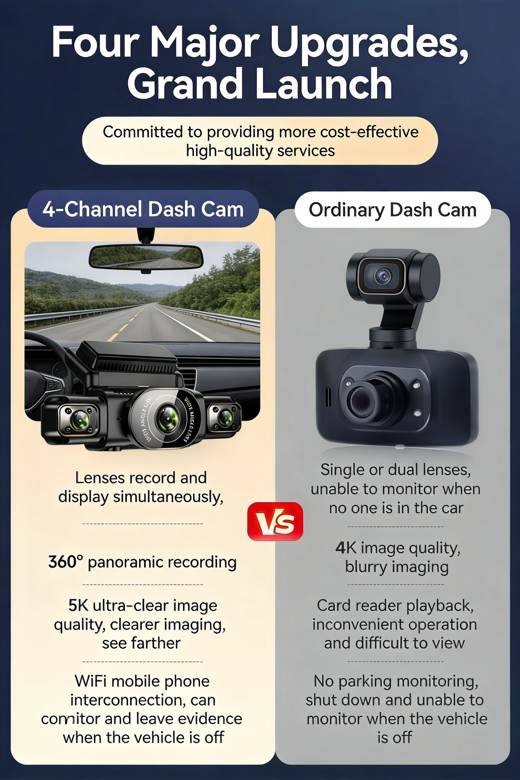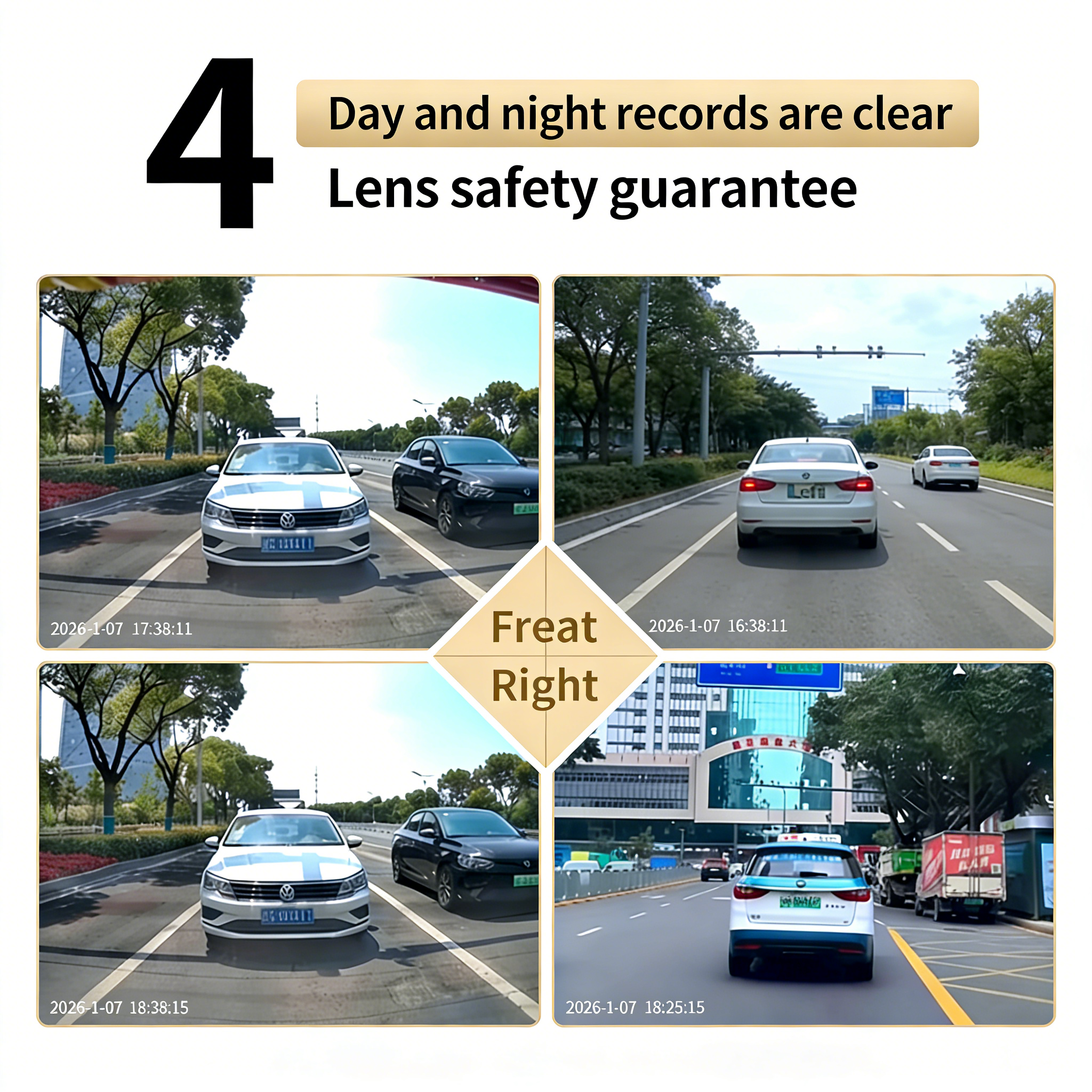 4K elülső fedélzeti kamera:Tiszta felvételt készít az előtted lévő útról, rögzíti a rendszámokat, közlekedési táblákat és egyéb fontos információkat, biztosítva, hogy kritikus pillanatokban minden rendelkezésre álljon. 🛣️